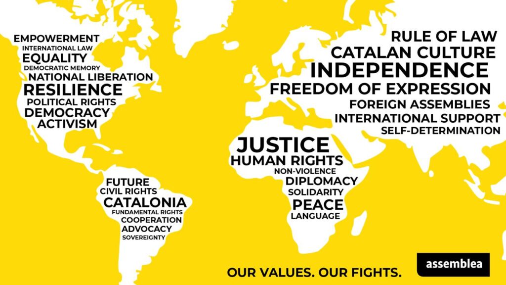 The Catalan National Assembly has several foreign assemblies around the world. They gather the Catalan diaspora, organise events and explain the Catalan struggle for independence to the world.